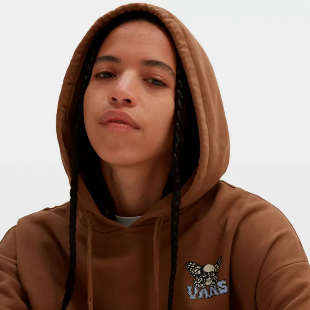 La sudadera con capucha Skullfly, ideal para los días fríos de otoño, está confeccionada en mezcla de algodón y presenta un cómodo corte extragrande, un bolsillo delantero central, el logotipo de Vans estampado en el pecho y una calavera con un gráfico de alas de mariposa en la espalda. Composición: 70% ALGODÓN Y 30% POLIÉSTER.